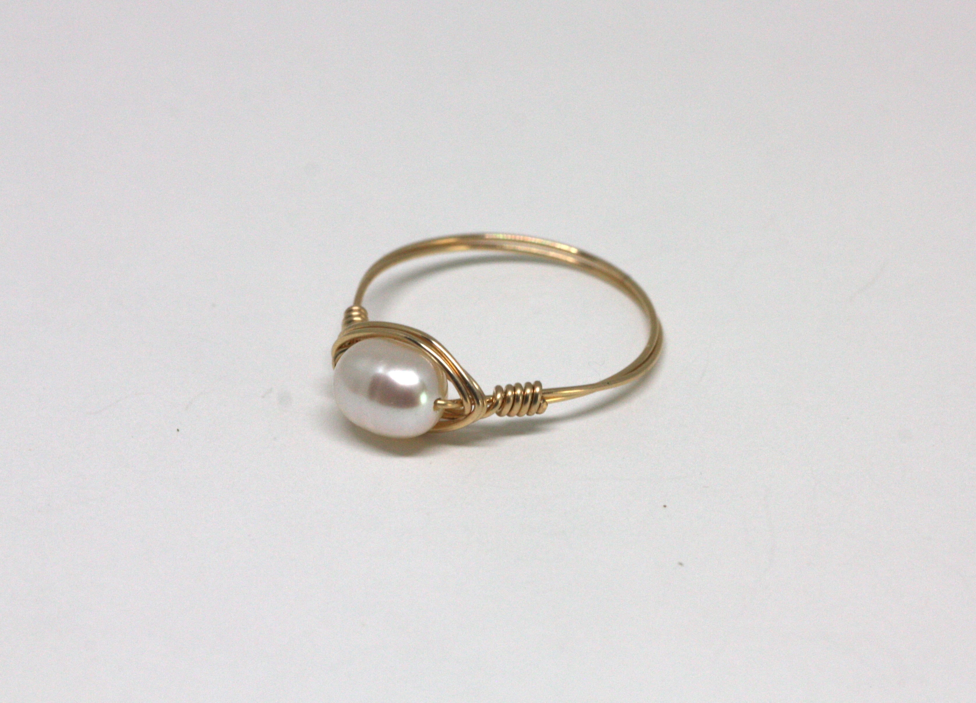 This beautiful, feminine ring features a lovely pearl and all 14k gold filled metals. The band is thin but durable, making it very comfortable for everyday wear.